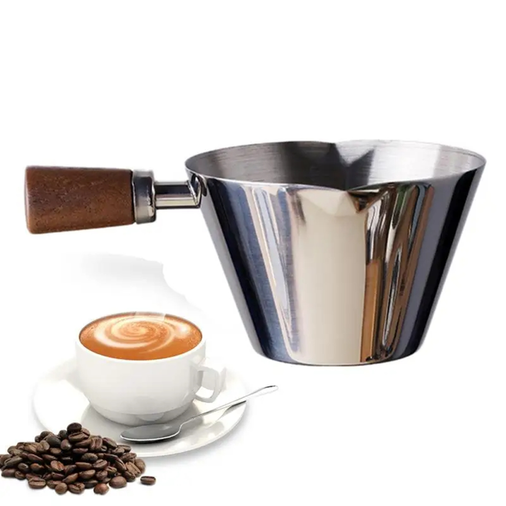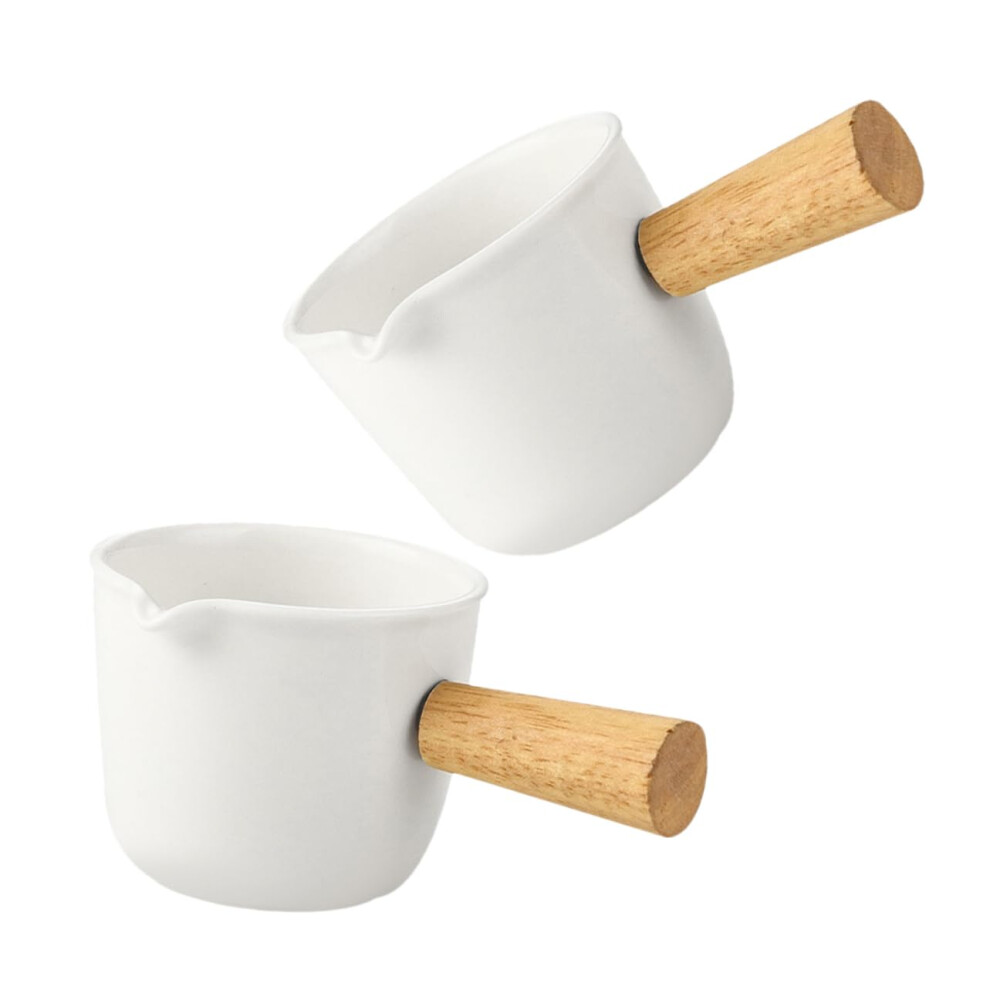 Small Milk Jug With Wooden Handle For Coffee Tea Sauces Home Cafe Use