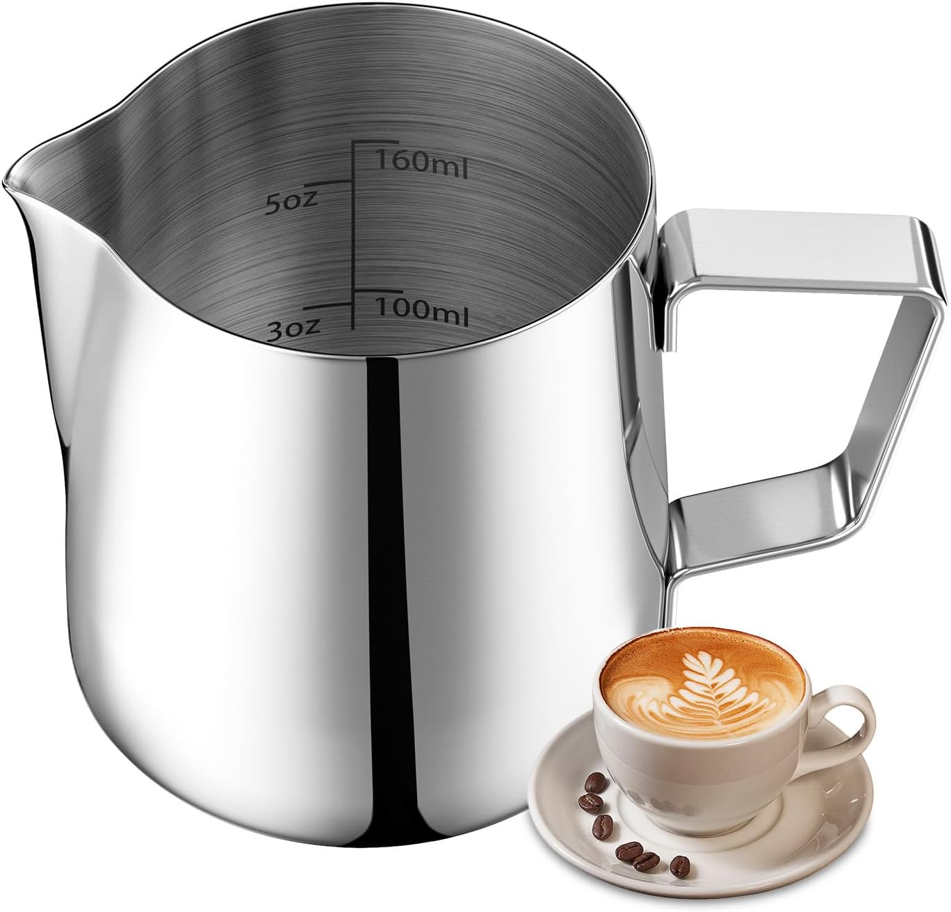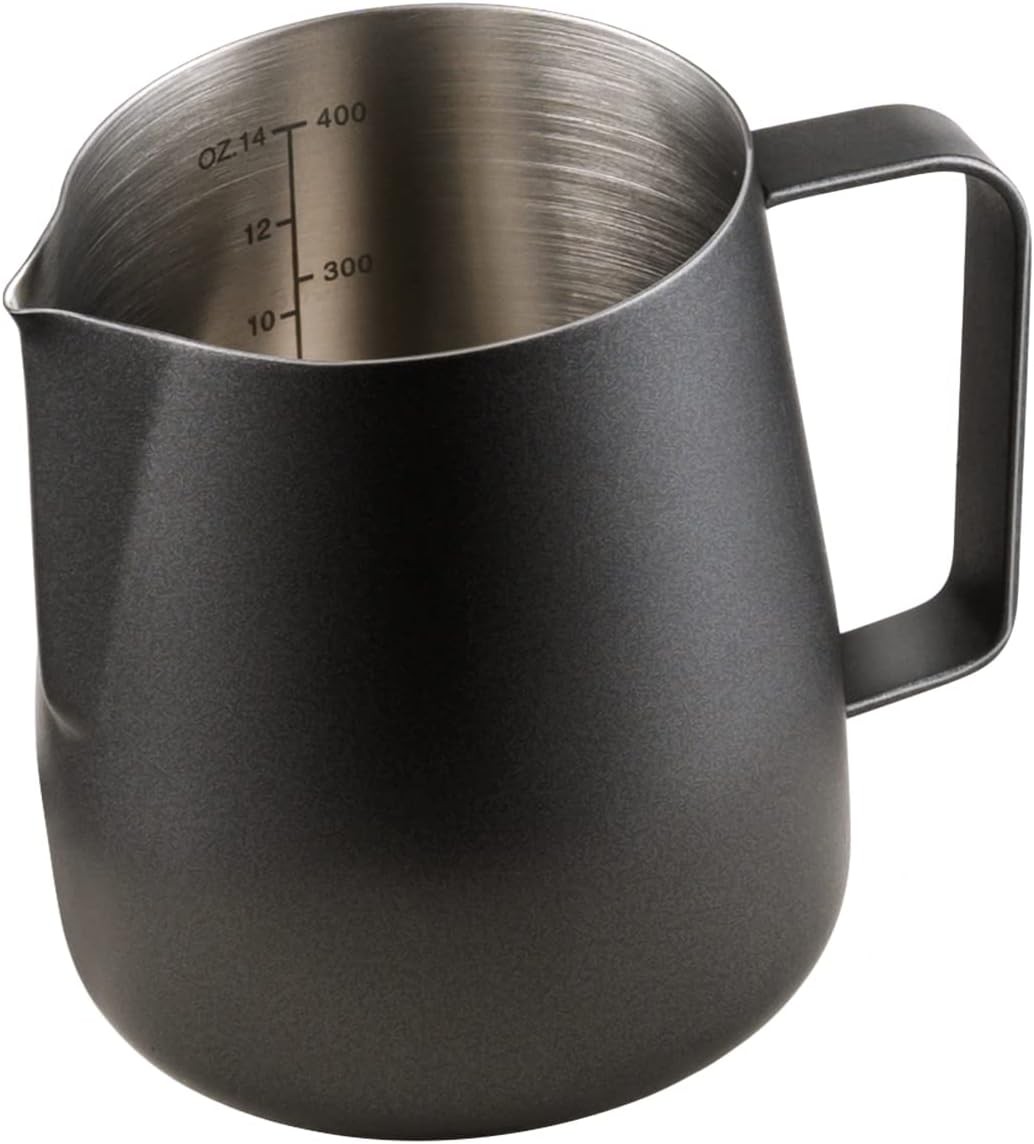 Milk Frothing Pitcher 400ml, Small Size Stainless Steel Milk Jug for Making Lat