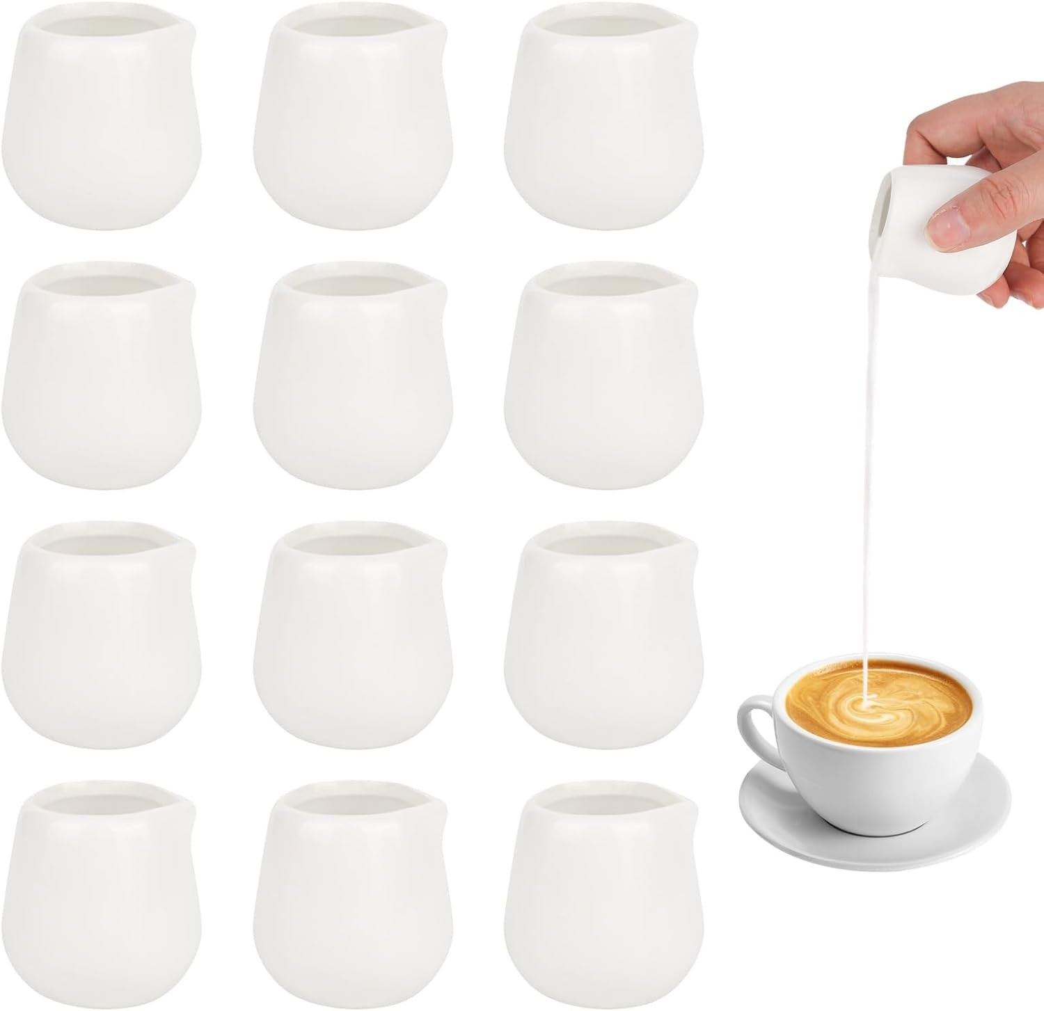 12 PCS White Small Porcelain Milk Jug, 60Ml Mini Milk Jug Porcelain Syrup Serve