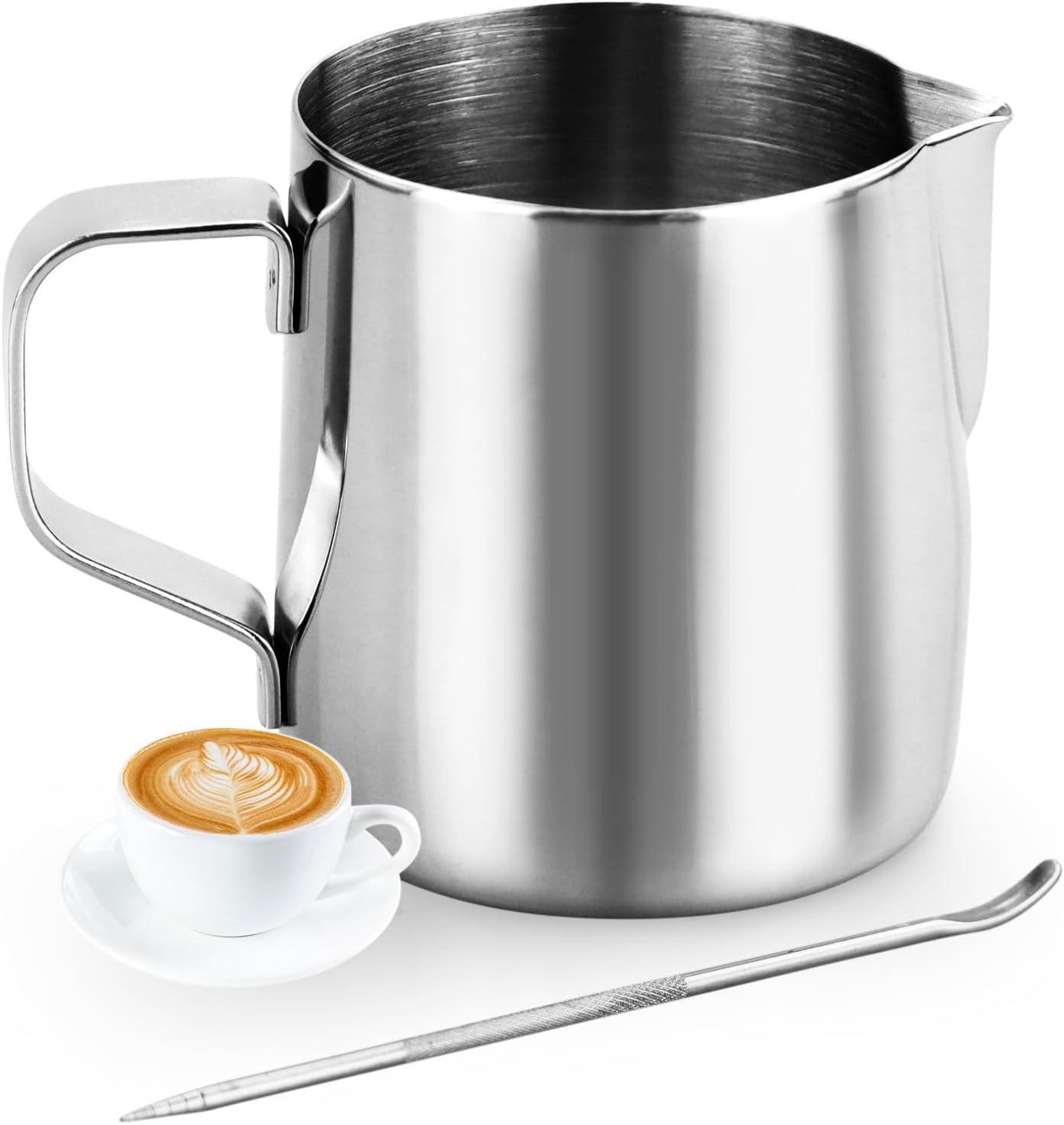 (As show, One size) 12oz Small Milk Frother Jug, Stainless Steel Milk Frothing Pitcher Espresso Milk Steamer Espresso Machine Accessories for Making L
