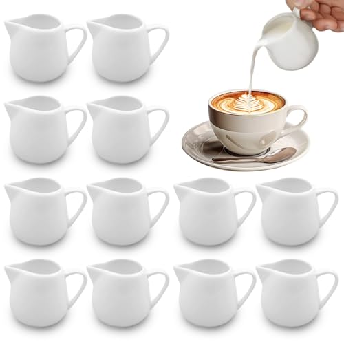 12 PCS White Small Porcelain Milk Jug, 60ml Mini Milk Jug Porcelain Syrup Serve