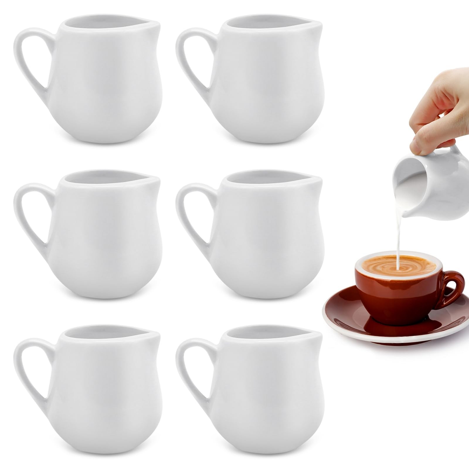 6 PCS Small Milk Jug Set - White Ceramic Frother, Creamer, Sauce Pots, Mini Tea