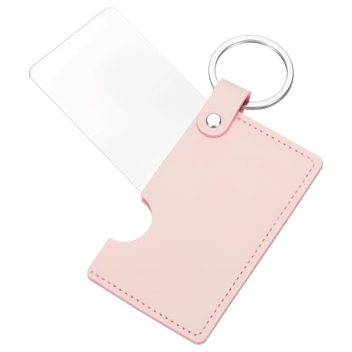 sourcing map Small Rectangle Pocket Mirror for Purse, 2 x 3.35 Inch Stainless Steel Compact Makeup Travel Handheld Mirrors with Leather Case for Women, Girls, Purse, Gift(Pink)
