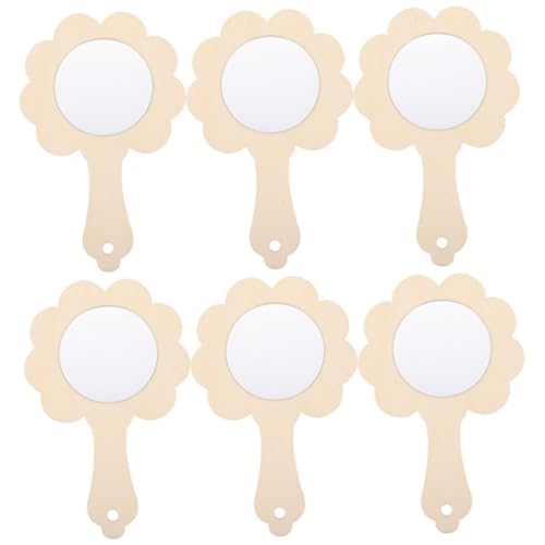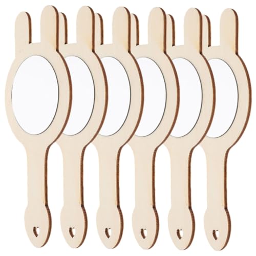 SUPVOX 6Pcs Wooden Small Mirrors DIY Craft Unfinished Handheld Mirrors for Creative Painting Educational Suitable for Bedroom Desk Decoration