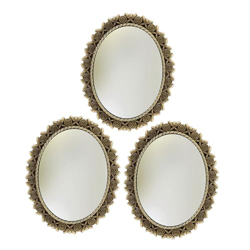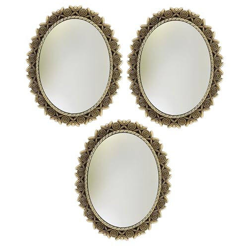 Cabilock 3pcs Vintage Oval Miniature Wall Mirrors for Dollhouse with European Style Frames Small Antique Hanging Mirrors for Bedroom Living Dresser Decoration and DIY Craft Accessories