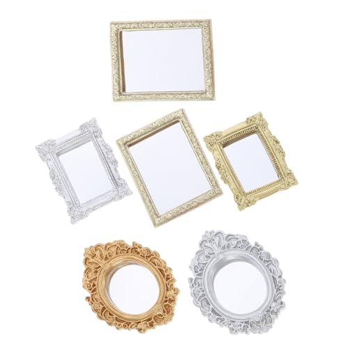 Hohopeti 6pcs Vintage Dollhouse Mirrors Small Ornate Miniature Decor for Dollhouse Furniture Accessories Bedroom Bathroom Retro Mini Scene Wall Decoration