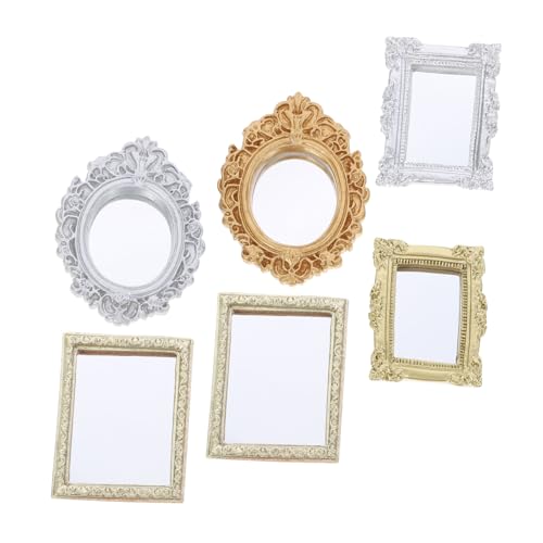 ERINGOGO 6pcs Miniature Dollhouse Wall Mirrors Small Resin Frame Vintage Style Decorative Accessories for Dollhouse Bedroom Bathroom Living Mini Furniture