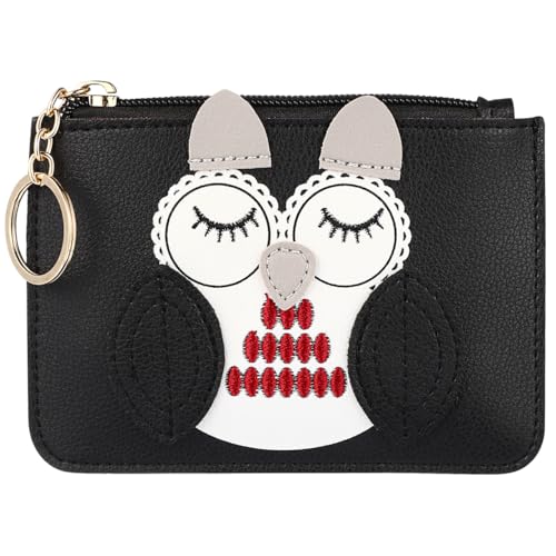 ULTECHNOVO Small Wallet Card Holder Cute Pu Leather Metal Zipper Convenient for Storing Keys and Small Mirrors Ladies Going Out Owl Shape