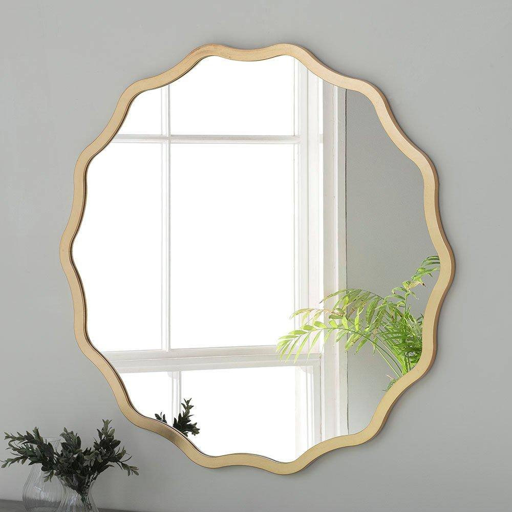 Yearn Mirrors Wavy Ripple Framed Circular Small Mirror in Gold