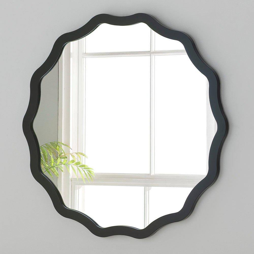 Yearn Mirrors Wavy Ripple Framed Circular Small Mirror in Black