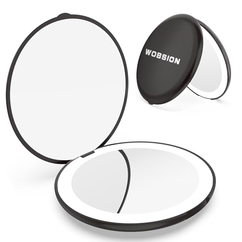 WOBSION Compact Mirror, Small Makeup Mirrors with Light for Travel, LED Pocket