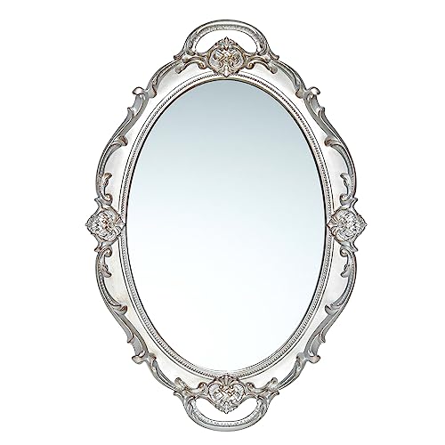 LONGWIN Vintage Oval Mirror for Wall Decor, Ornate Hanging Small Mirrors for Living Room/Bedroom, Perfume/Vanity Tray 10 x 14.5 Inch Silver