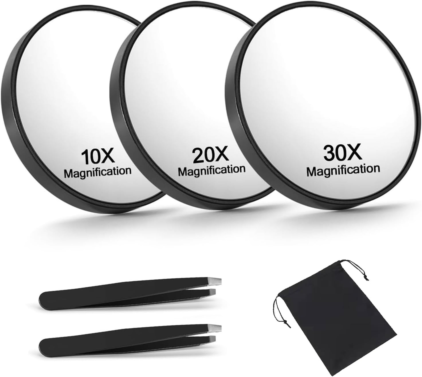 30X Magnifying Mirror, Small Magnifying Mirrors with Suction Cup and Tweezers,
