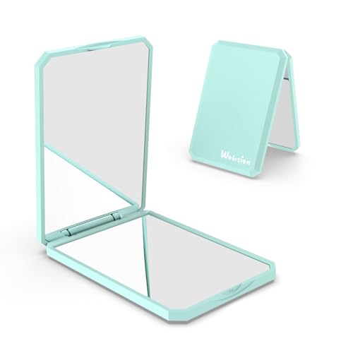 WOBSION Compact Mirror for Purse, Pocket Mirror for Handbag & Travel, Small Makeup Mirrors with Magnification, Portable, Folding, Handheld, Gifts for Women, Cyan