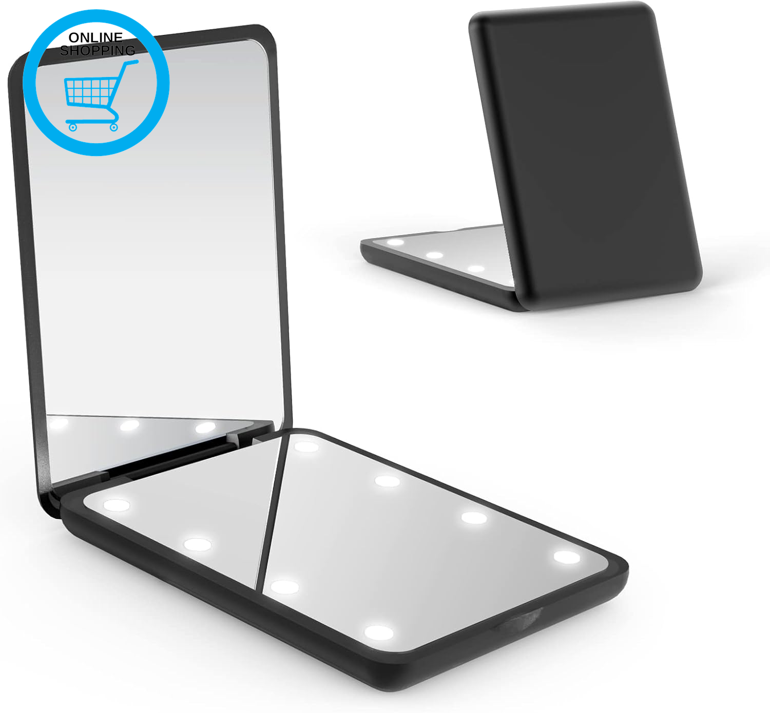 WOBSION Compact Mirror with Light, 1x/10x Magnifying Travel Makeup Mirror, LED Pocket Mirrors for Purse and Handbag, Handheld 2-Sided Small Folding Mirrors, Round, Black