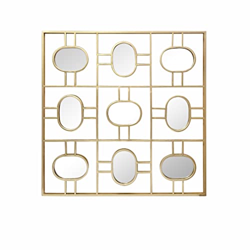 LW Collection Wall Mirror Gold Square 80 x 80 cm Metal - Large Mirror Wall - Industrial - Living Room Hallway - Bathroom Mirror - Mirror with Small Mirrors