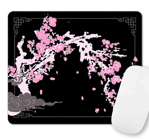 SXCKANG Japanese Aesthetic Mouse Pad, Pink Cherry Blossom Mousepad, Black Cute Small Mouse Mat for Work, Game, Office, Home, Computer Accessories - Japan Sakura Flowers Art, 9.5" x 7.9"