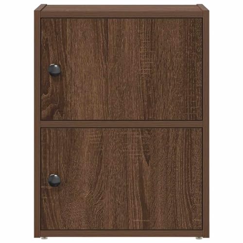 Brown oak Bookcase with Doors, Small Storage Cabinet with Adjustable Shelves, Engineered Wood Bookshelf Unit for Living Room, Bedroom & Home Office – Compact Organiser Cupboard, 40×24×52 cm