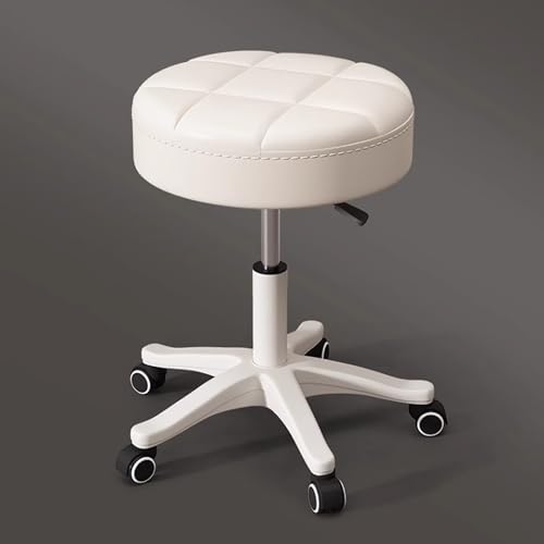 Rolling Stool with Wheels, PU Leather Small Office Chair, Versatile Adjustable Swivel Stool for Or Work SPA Shop Massage(White)