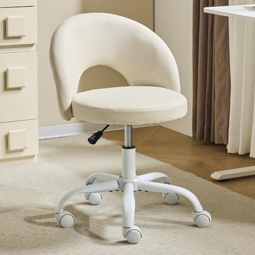Bonnlo Comfy Small Office Chair with Wheels Desk Vanity Chair Modern Swivel Dressing Table With Adjustable Height for Home Office, Bedroom, Dressing Room (Creamy Beige)