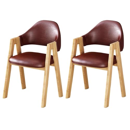 peilouw Solid Wood Dining Chair with Armrests,Modern Leather Dining Room Chair with Backrest,Small Computer Office Chair Gaming Chair Accent Chair(Set of 2, Brown)