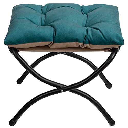 HollyHOME Foot Stool Foldable Footstool Folding Footstools for Living Room Garden Balcony Foot Rest Small Ottoman with Metal Legs, Peacock Blue