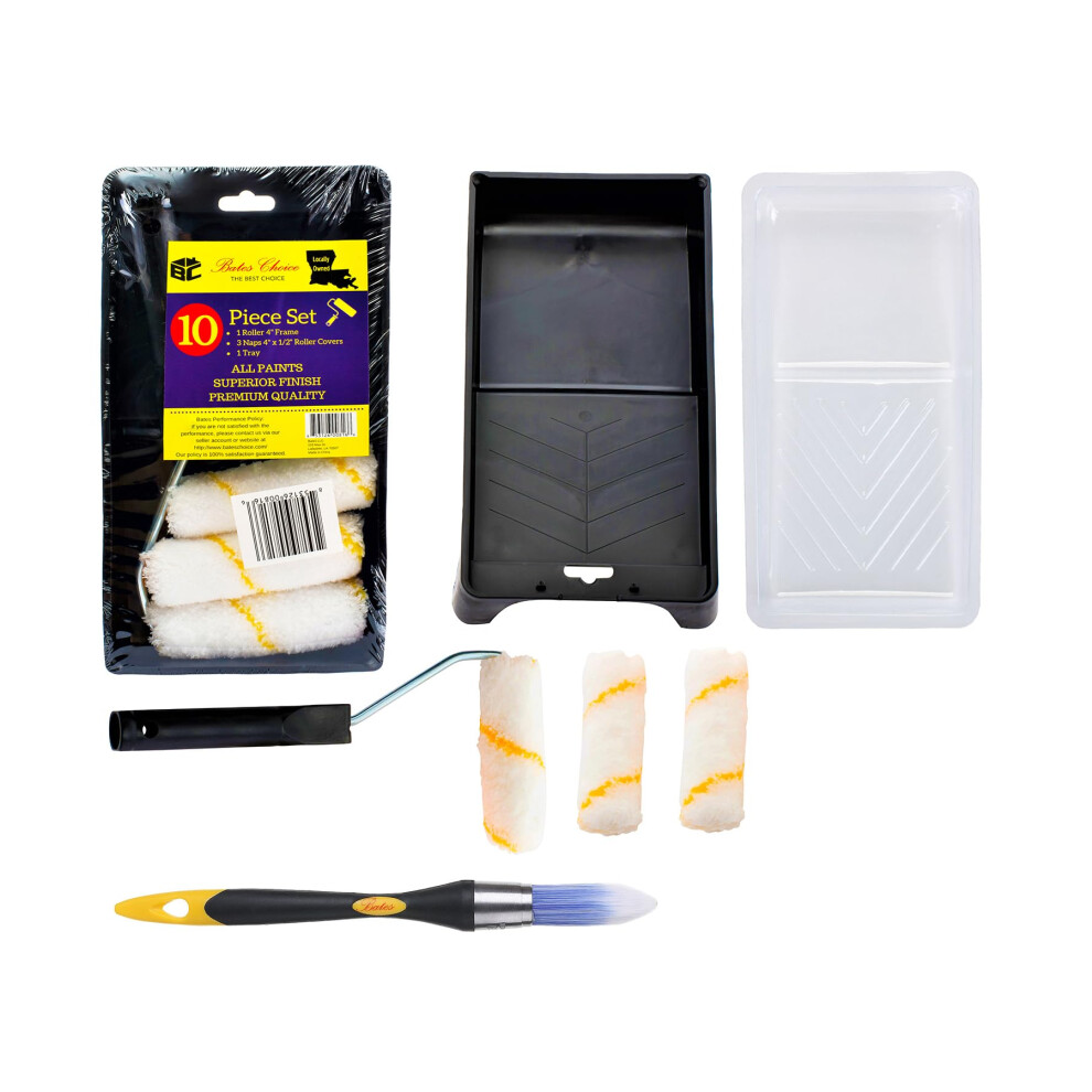Bates- Paint Tray Set 10 pcs 4-Inch Paint Roller Kit Small Paint Roller Paint Brush Paint Roller Set Paint Rollers 4 Inch Paint Roller Tray Pai