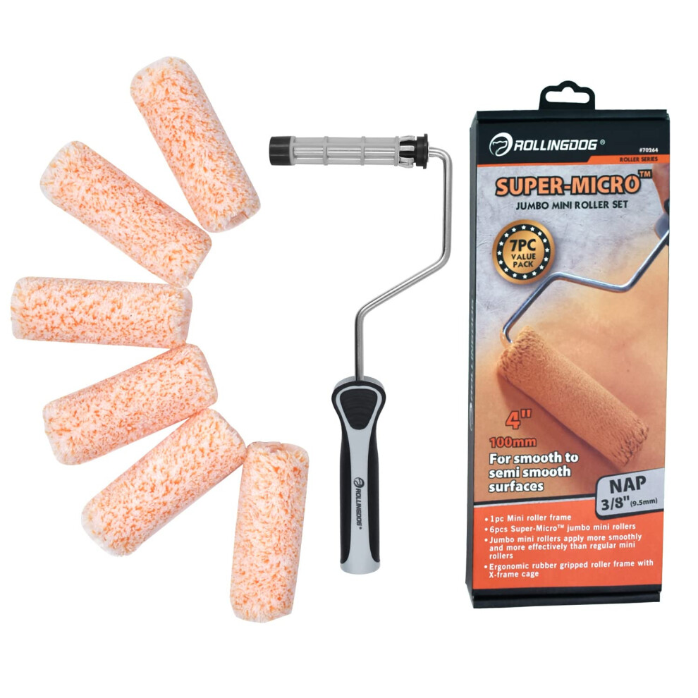 ROLLINGDOG Mini Roller - 4 Inch Jumbo Microfiber Small Paint Roller Covers 3/8 Nap