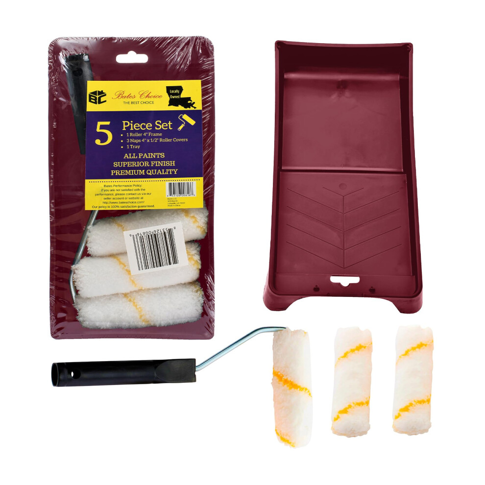 Bates- Paint Tray Set 5 pcs 4-Inch Paint Roller Kit Small Paint Roller Paint Brush Paint Roller Set Paint Rollers 4 Inch Paint Roller Tray Pain