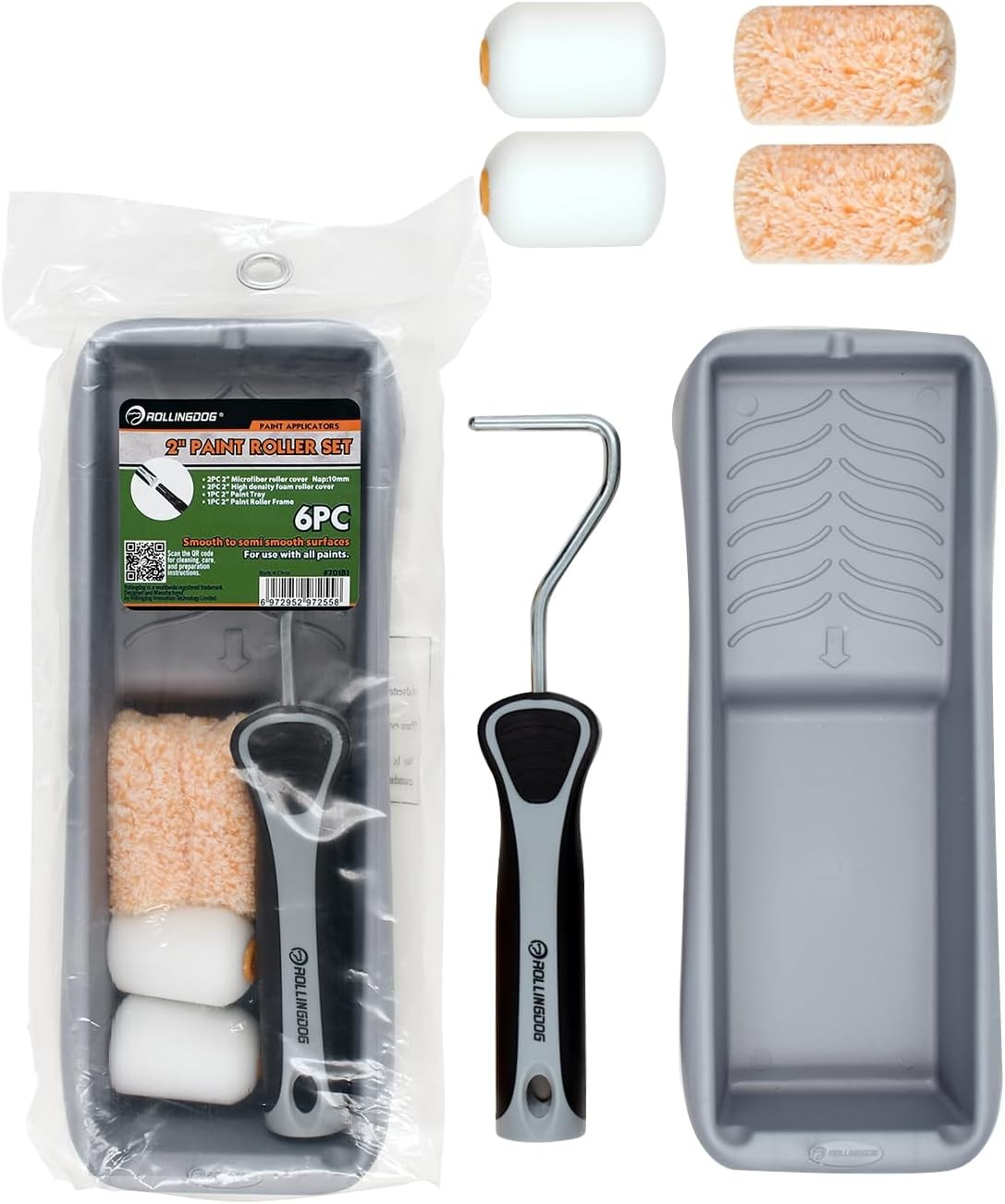 ROLLINGDOG Mini Paint Roller Set - 2 Inch Small Paint Roller Small Rollers for