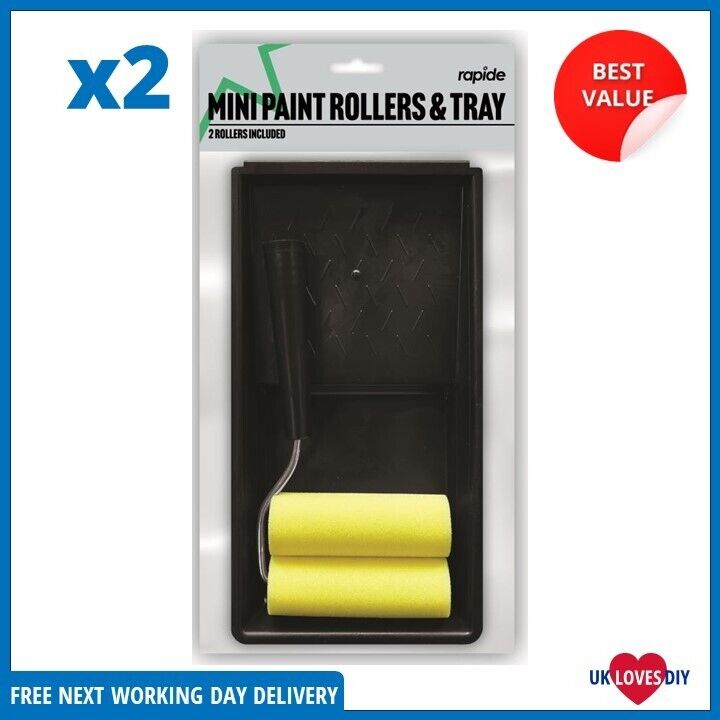 Rapide 4pc Small Job Paint Roller Set Touch Up Kit Mini Fleece Rollers Tray 2pk