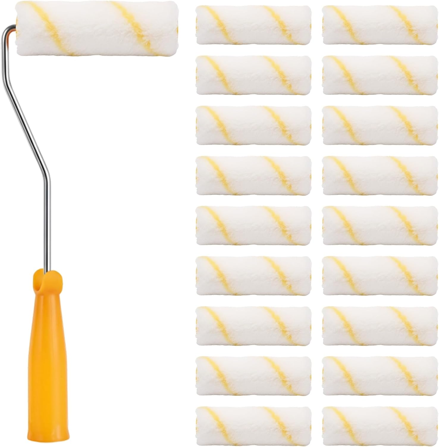 Small Paint Roller, 18 PCS Mini Paint Roller Set with Handle, 4 Inch Mini Roller