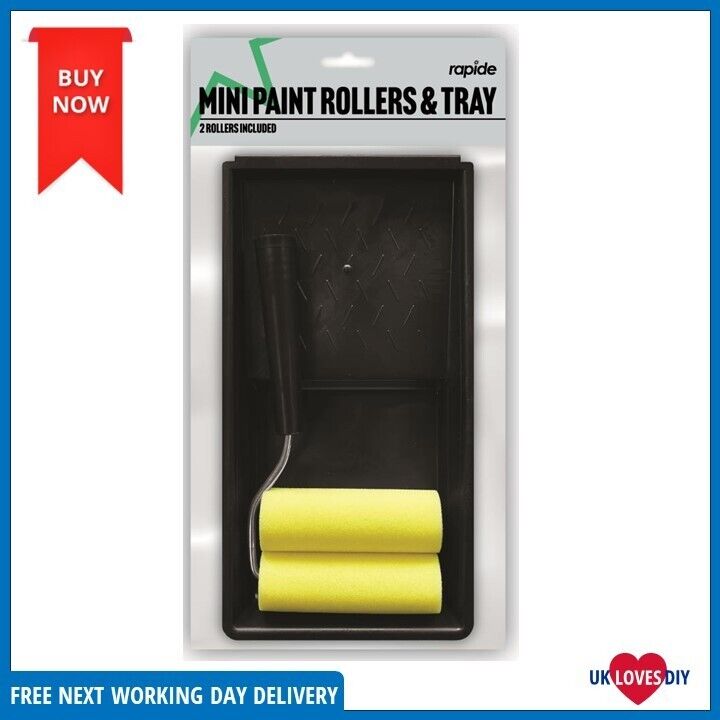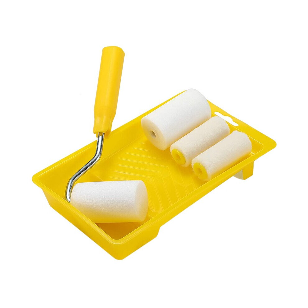 Mini Small Emulsion Paint Roller And Brush Set Kit With Tray Foam 4 Inch DIY