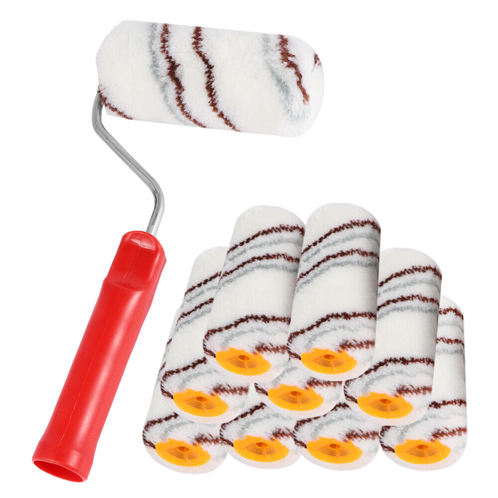 (As show, One size) Paint Rollers 10cm 10 Pieces Paint Roller Set Small Paint Roller With 1 Roller Brush Holder 30cm Home Decoration Tools compatible