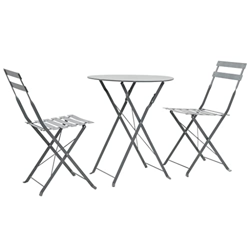 QJBSAVVA 3 Piece Folding Bistro Set Grey Powder Coated Steel Outdoor Garden Patio Furniture Table 60x71 cm and 2 Chairs Foldable Small Dining Set for Garden Balcony Terrace