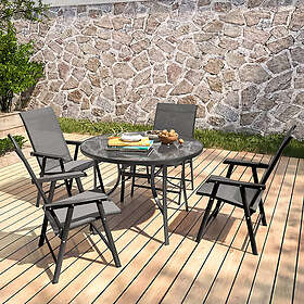 Gecheer Garden Dining Set - Elegant Outdoor Furniture with Stacking Chairs, Grey and Black Table, 180 x 80 x 70 cm - Perfect for Patio and Small Spaces Model3095988