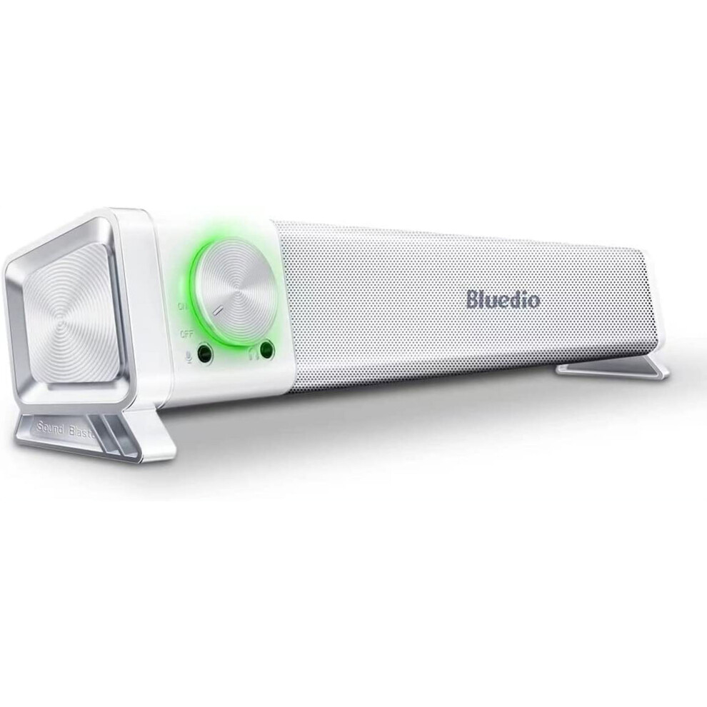 SOULION R30 Computer Speakers, USB Powered Small PC Speakers, Colorful LED Lights with Switch Button, Surround Sound Portable Computer Sound Bar Speaker for Desktop Laptop, White