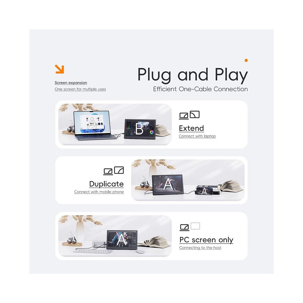 Portable Monitor 11.6" USB-C IPS External Screen Small Built-in Dual Speakers Gaming for Laptop PC Plug Play