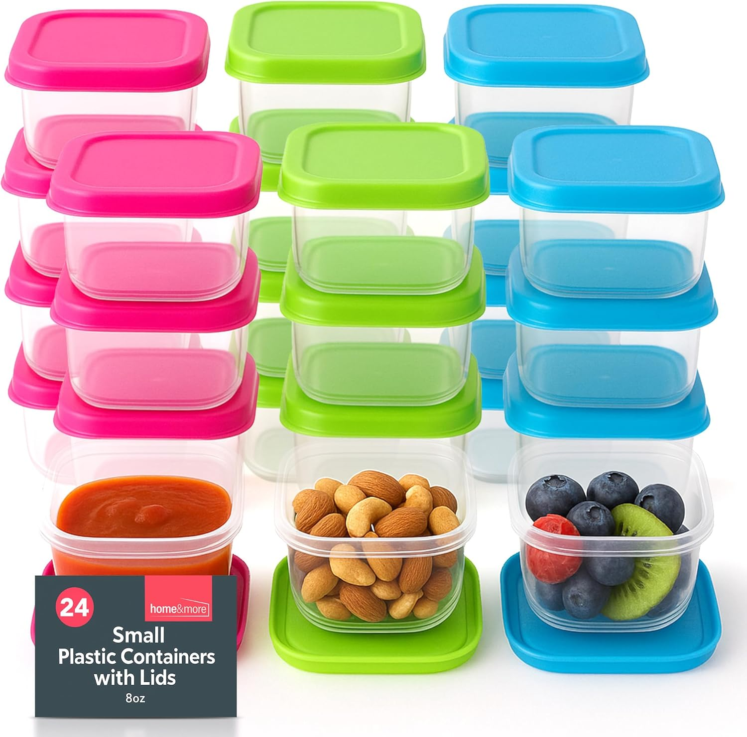SOL 24 Pack of Small Plastic Containers with Lids - 6cm x 6cm x 3.5cm - Mini Kitchen Storage Small Tub with Lids - 80ml - Stackable & Airtight Storage for Lunch Boxes, Food, Snacks and More