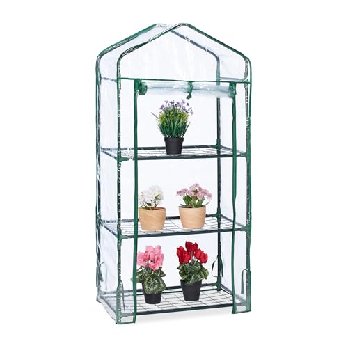 Relaxdays Small Greenhouse for Balcony, 3 Shelves, Metal & Plastic, Plant Cultivation, 128x60x40 cm, Green/Transparent, Iron
