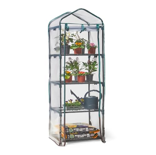 VonHaus Mini Greenhouse – 4 Tier Small Greenhouse with Reinforced Weatherproof Plastic PVC Cover – 158cm Tall Green House for Garden, Outdoor & Indoor, Roll Up Zip Panel Door & Easy No Tool Assembly