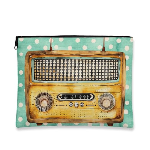 Colorful Makeup Pouch, Retro Radio Art Cosmetic Bag for Women, Portable Small Zipper Organizer, Travel Toiletry Bag, Festival Gift, Colorful, 7x9 Inch