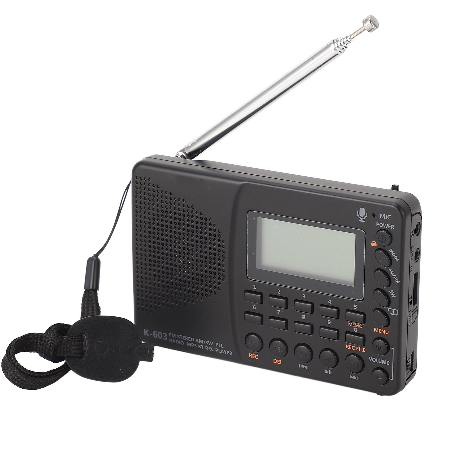 K‑603 FM/AM/SW Radio Multi‑Function Portable Small Radio Stereo Speaker REC Reco