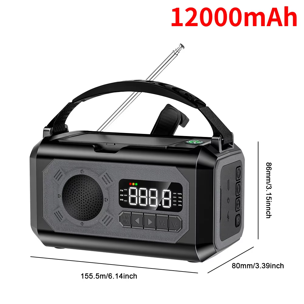 12000Mah Small Portable Radio Solar Panels Emergency Radio Survival with Crank M