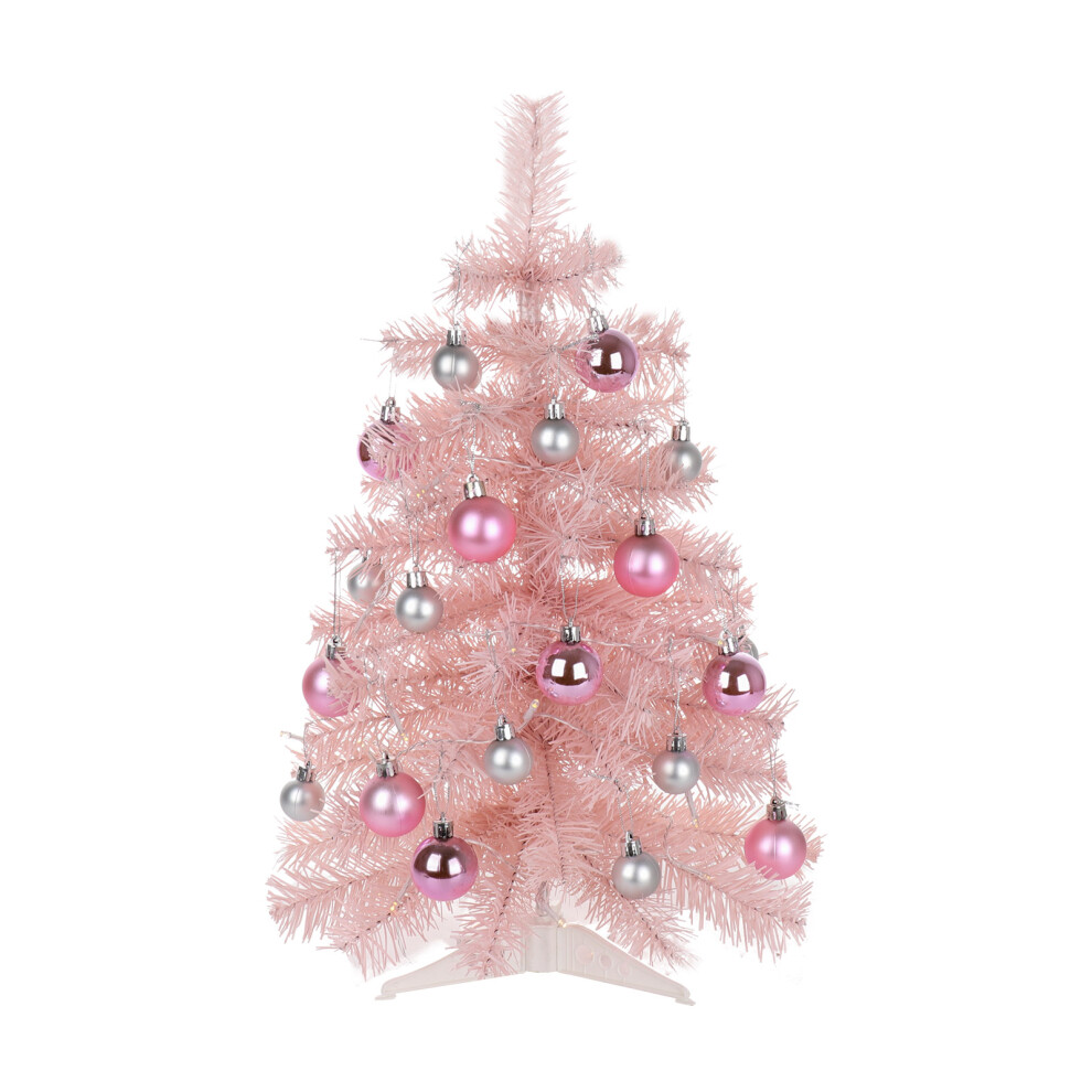 solacol Mini Pink Christmas Tree , Small Desktop Prelit Artificial Christmas Tree with Firm Stand for Xmas Party Supplies Home Indoor Decoration