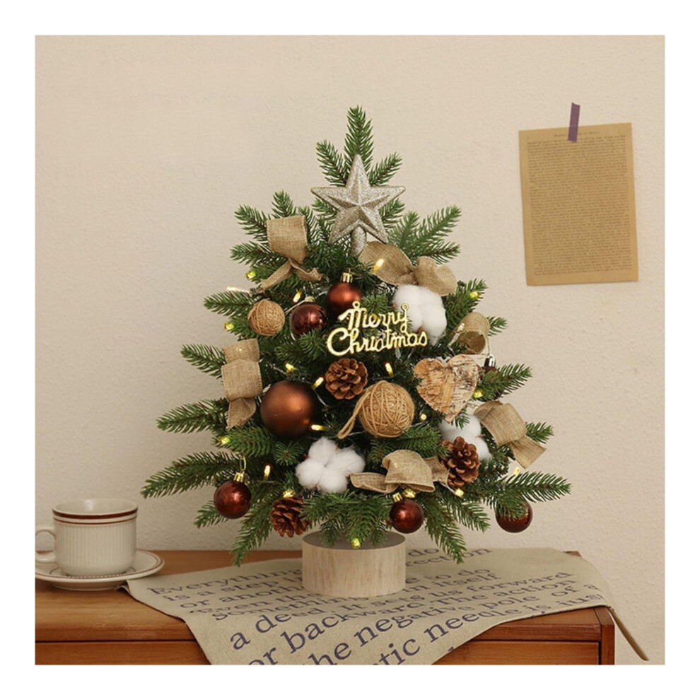 Bouanq Christmas Decorations Xmas Tree Decor Newest Artificial Mini Prelit Indoor Christmas Trees with Lights, Small Tabletop Xmas Trees Compatible