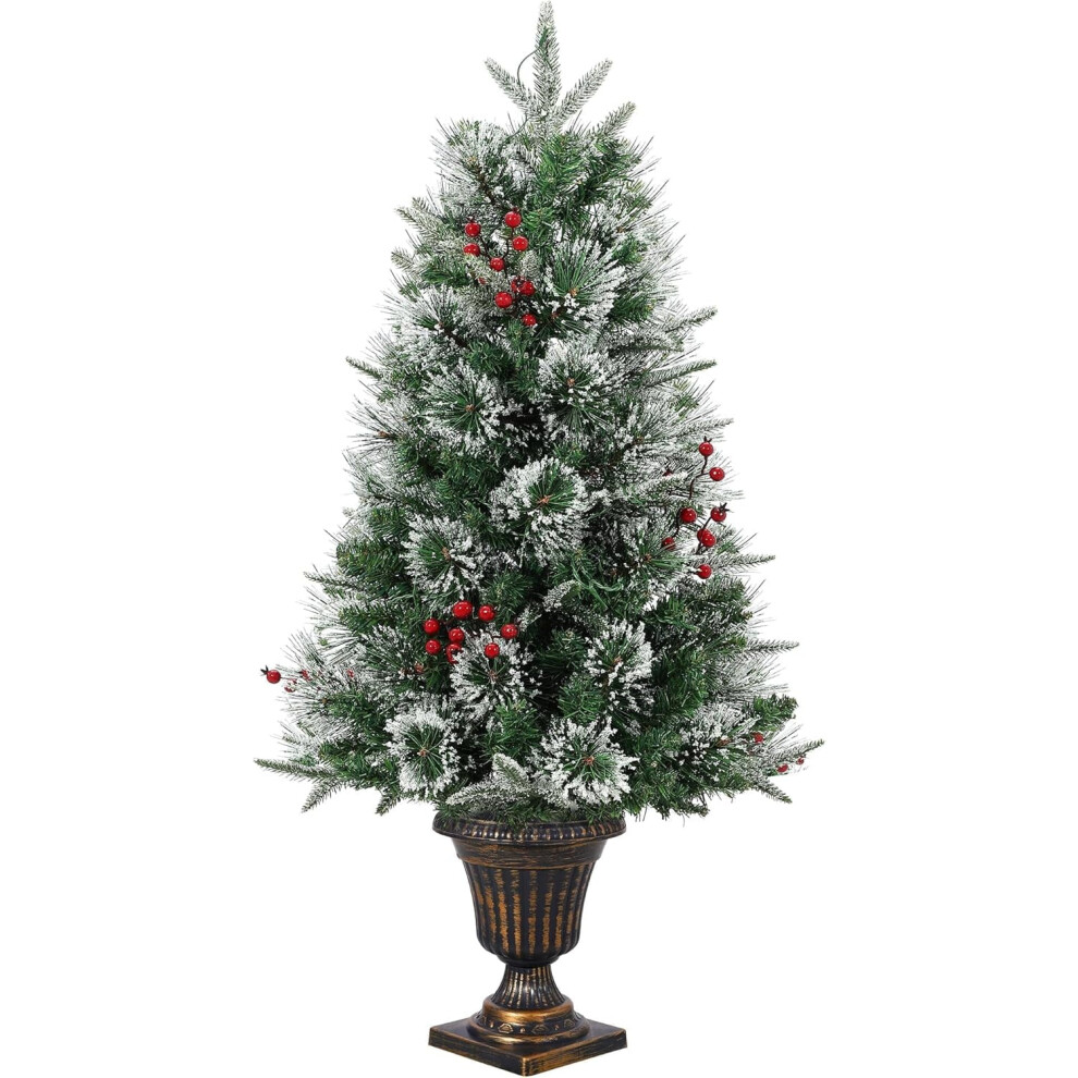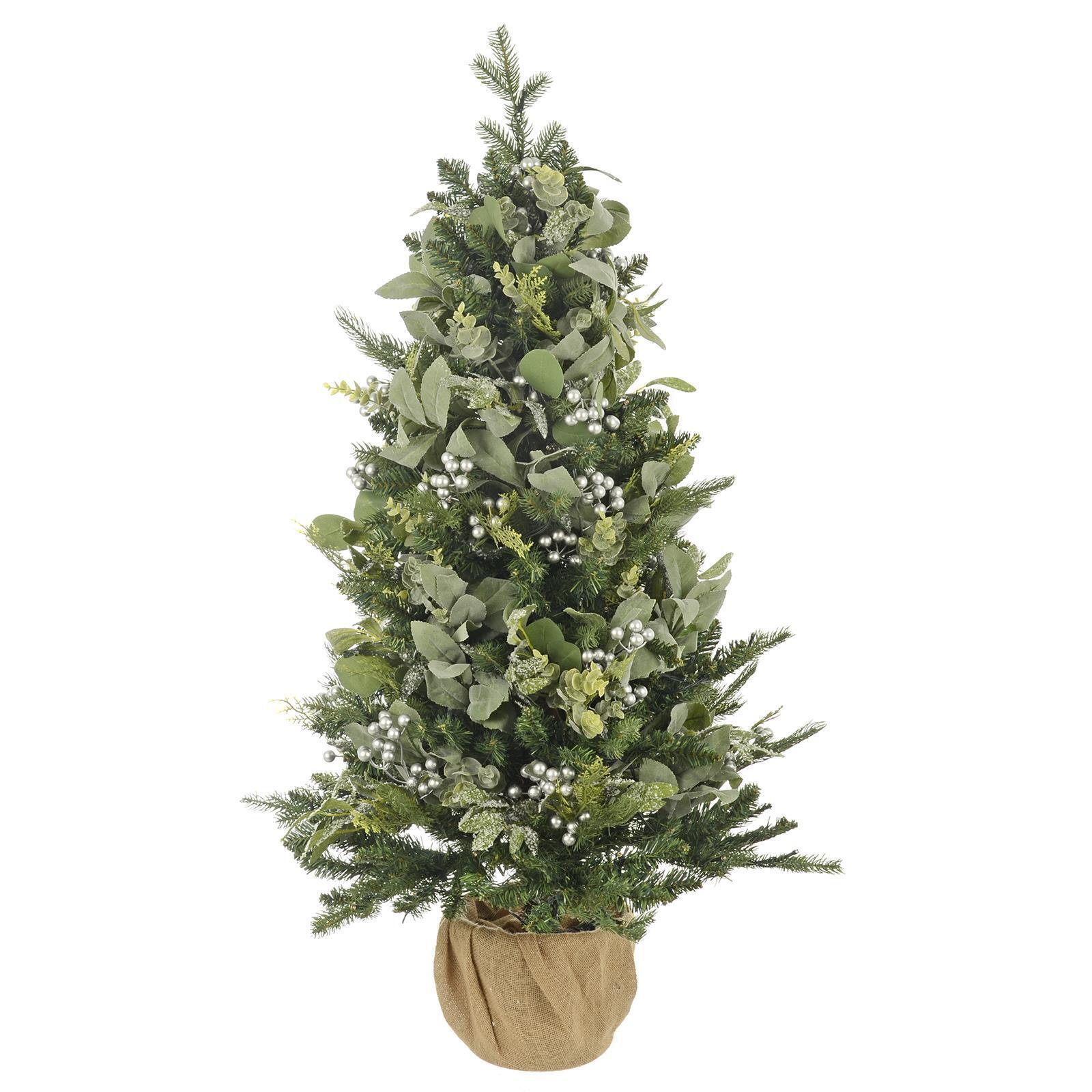 Pre-Lit Small Christmas Tree 100 Lights Green Frost Leaves Silver Berries 110cm