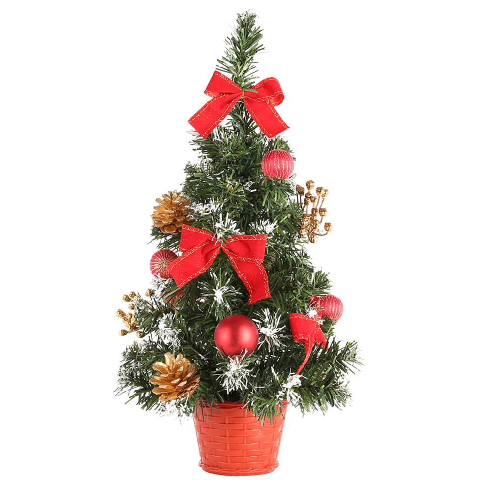 11.81" Mini Small Little Tabletop Prelit Christmas Tree Decorated with Ornaments Multi-Colored Lights Artificial Green Tree