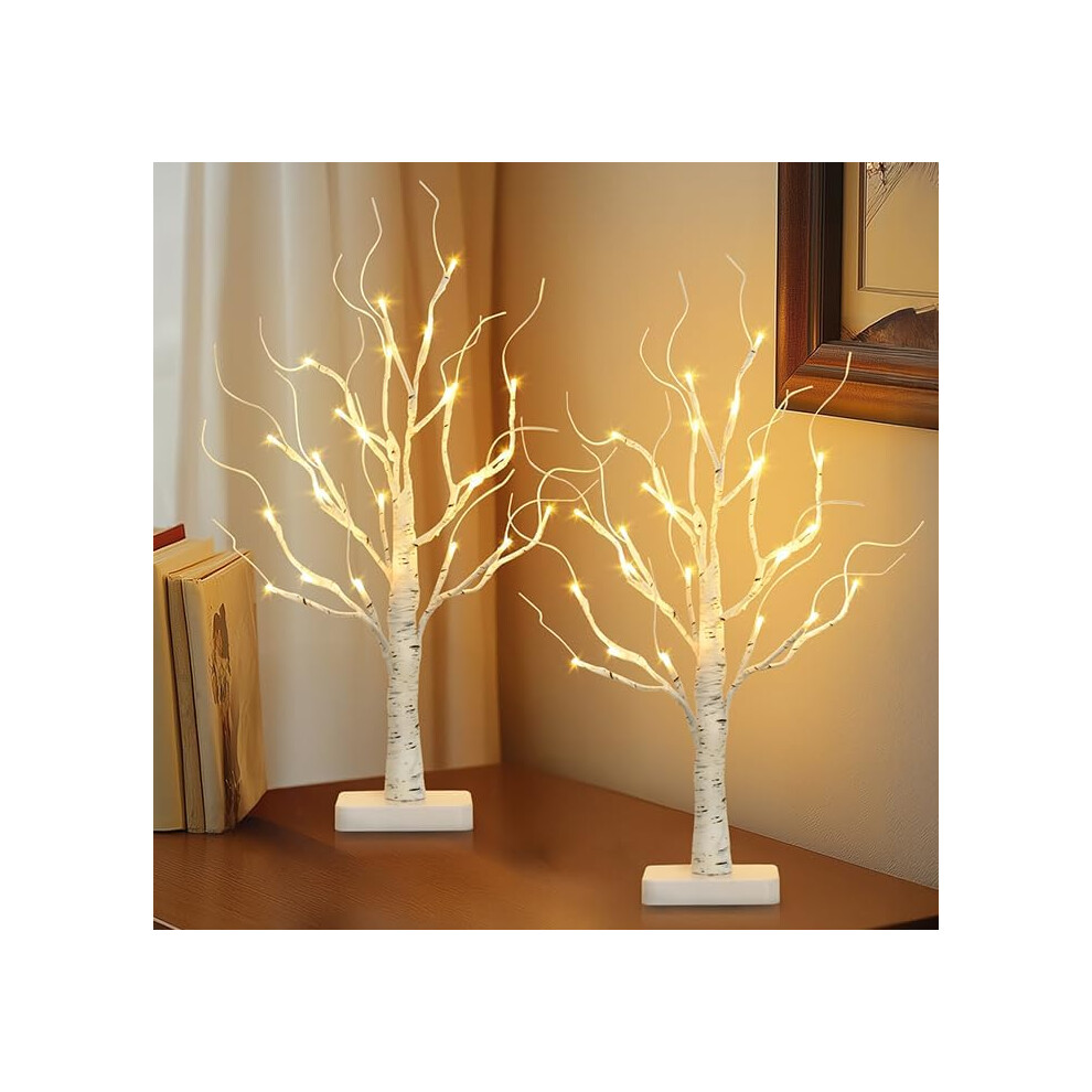 Eambrite Set of 2 White Twig Tree with Lights, Prelit Small Easter Tree, Christmas Tabletop Decorations Indoor for Home Wedding Fireplace Decor (Warm