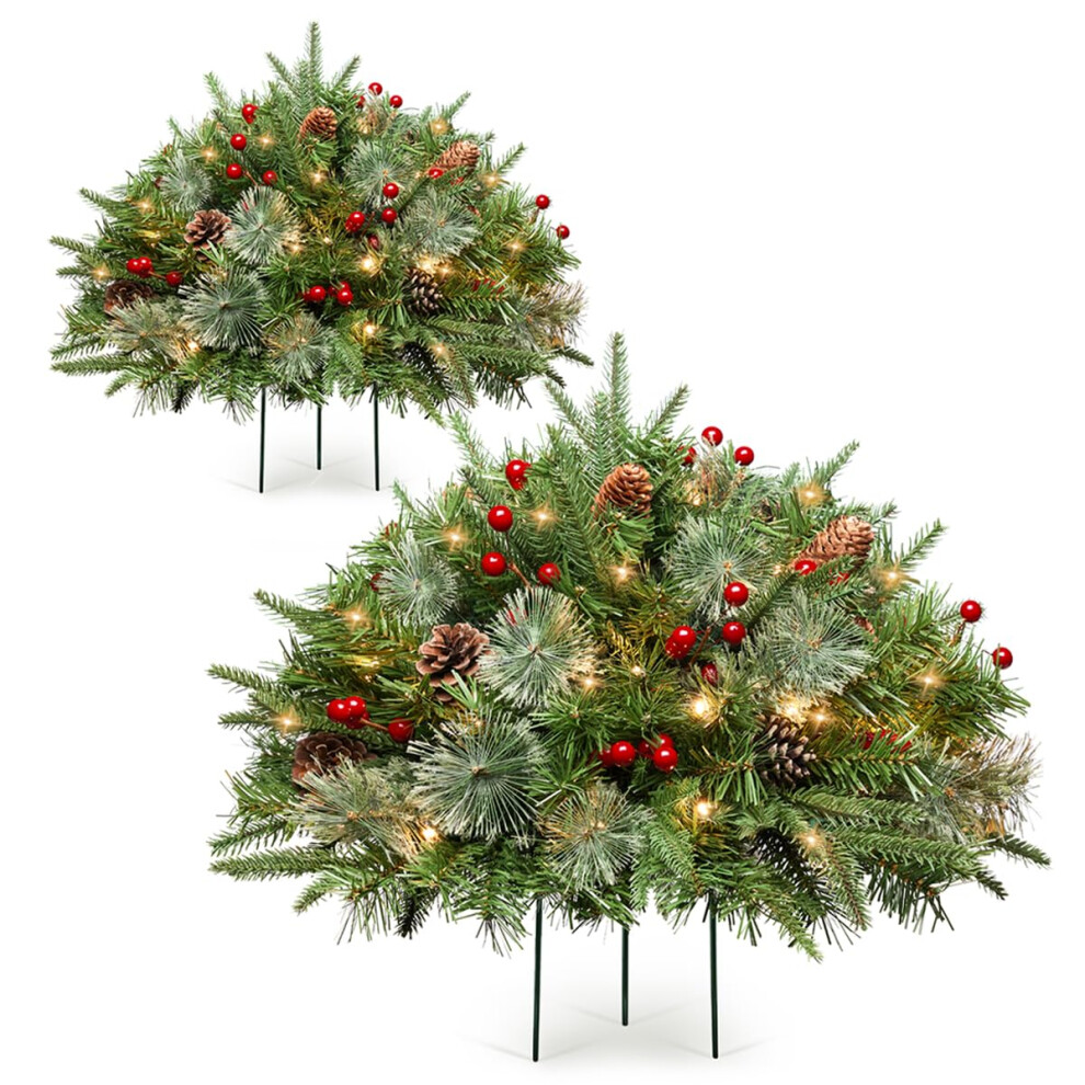 Outdoor Pathway Christmas Trees, Prelit Small Tree with Red Berries & Pine Cones, Battery Operated for Porch, Driveway, Garden Decor